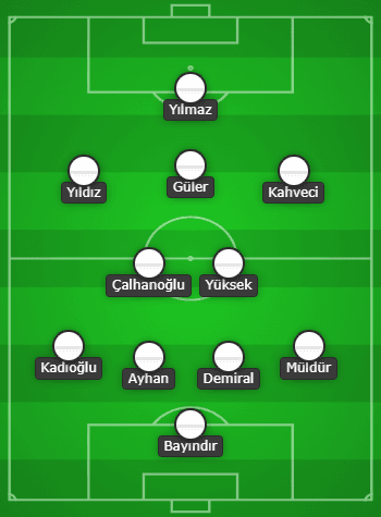 อัลทาย บายินเดียร์ – แมร์ท มูลดูร์, เมรีห์ เดมิรัล, คาน อายฮาน, แฟร์ดี้ คาโดลู – อิสมาเอล ยุคเซค, ฮาคาน ชัลฮาโนลู – อิรฟาน คาร์เวเจอ, อาร์ดา กูแลร์, เคนัน ยิลดิซ – บาริส อัลแปร์ ยิลมาซ