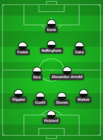 จอร์แดน พิคฟอร์ด – ไคล์ วอล์คเกอร์, จอห์น สโตนส์, มาร์ค เกฮี, คีแรน ทริปเปียร์ – เทรนท์ อเล็กซานเดอร์-อาโนลด์, เดแคลน ไรซ์ – บูกาโย่ ซาก้า, จู๊ด เบลลิงแฮม, ฟิล โฟเด้น – แฮร์รี่ เคน