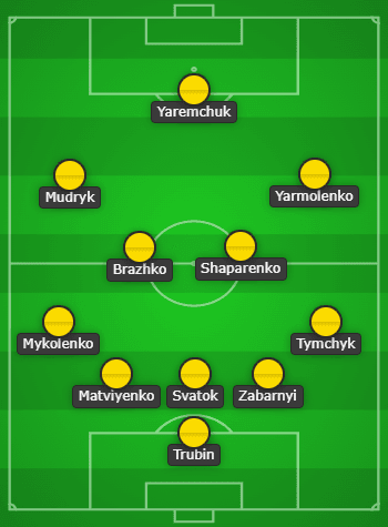 อนาโตลี่ ทรูบิน – โอเล็กซานเดอร์ ทิมชิค, อิลยา ซาบาร์นี, โอเล็กซานเดอร์ สวาต็อก, มิโคลา มัตวิเยนโก้, วิตาลี่ มิโคเลนโก้ – อังเดร ยาร์โมเลนโก้, มิโคล่า ชาปาเรนโก, โวโลดิเมียร์ บราซโก้, มิไคโล มูดริก – โรมัน ยาเรมชุค
