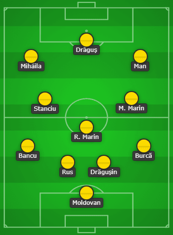 โฮราติอู มอลโดวาน – อังเดร บูร์กา, ราดู ดรากูซิน, อาเดรียน รุส, นิคูเซอร์ บันคู – มาริอุส มาริน, ราซวาน มาริน, นิโคไล สแตนซิอู – เดนนิส มาน, เดนิส ดรากุส, วาเลนติน มิไฮลา