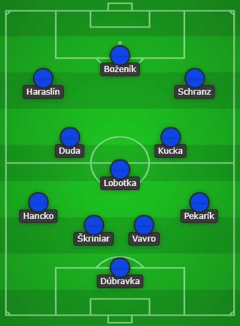 มาร์ติน ดูบราฟกา – ปีเตอร์ เปคาริก, เดนิส วาฟโร, มิลาน สคริเนียร์, เดวิด แฮนค์โก้ – ยูราย คุชก้า, สตานิสลาฟ โลบอตก้า, ออนเดรย์ ดูด้า – อิวาน ชรานซ์, โรเบิร์ต โบเซนีค, ลูคัส ฮาราสลิน