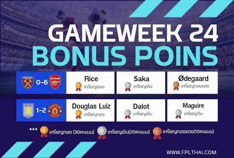 สรุปคะแนนโบนัส FPLTHAI – GW24 คู่วันที่ 11 ก.พ. 2567