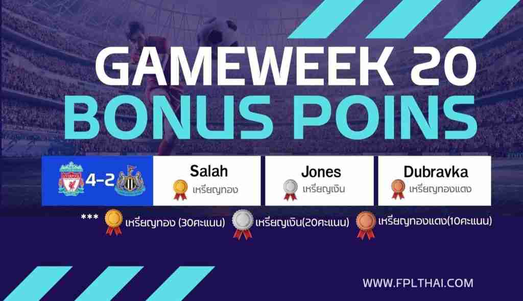 สรุปคะแนนโบนัส FPLTHAI – GW20 คู่วันที่ 1 ม.ค. 2567
