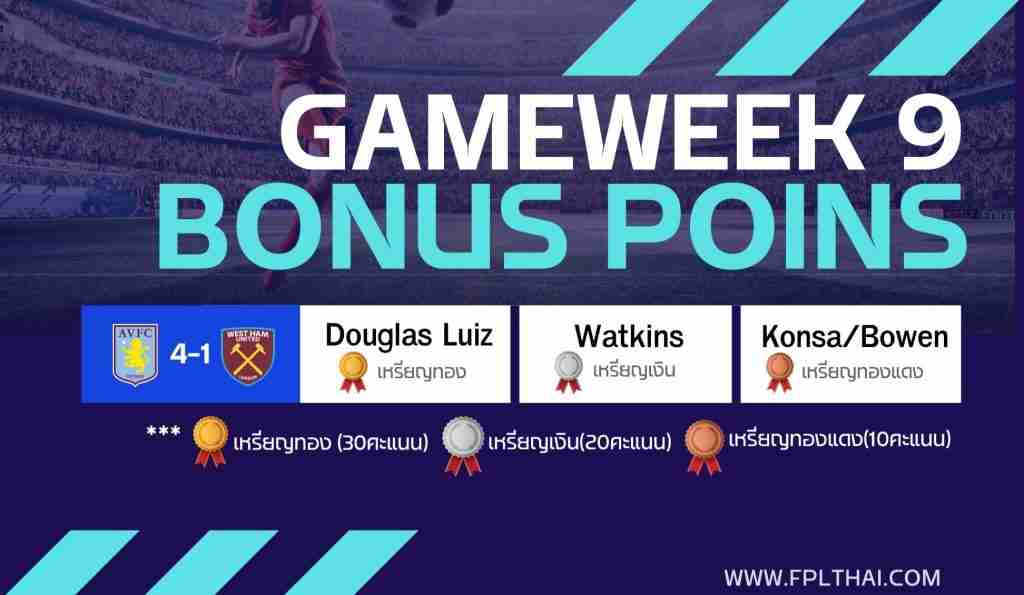 สรุปคะแนนโบนัส FPLTHAI – GW9 คู่วันเสาร์ ที่ 22 ต.ค.2566