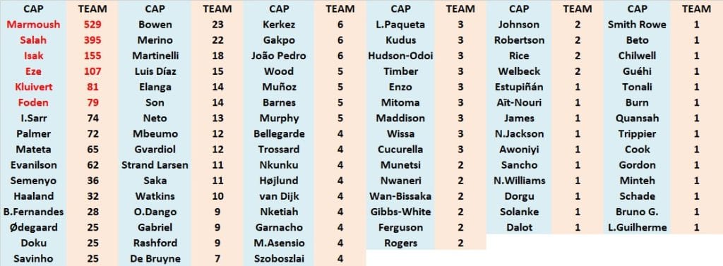 โดยกองหน้าทีมชาติอียิปต์ถูกเลือกสวมปลอกแขนนำทีมถึง 529 ทีมจากทั้งหมด 2,147 ทีม เนื่องจากเกมวีคนี้เรือใบสีฟ้าจะไร้ เออร์ลิ่ง ฮาแลนด์ ลงสนาม ทำให้หอกแดนมัมมี่น่าจะการันตีการยืนเป็นหัวหอกค่อนข้างแน่ อีกทั้งยังเจอทีมฟอร์มย่อย่างเลสเตอร์อีกด้วย