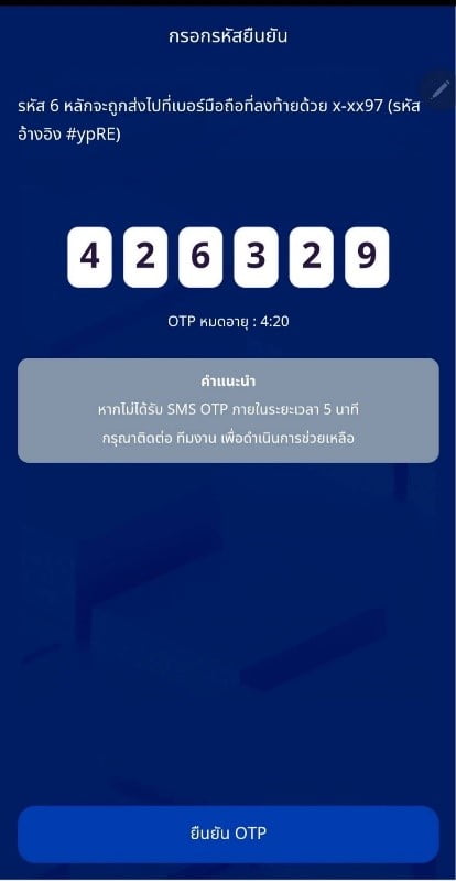 3. รหัส OPT จะส่งไปเบอร์ที่ลงทะเบียน / กรอกรหัส OTP และ กด ยืนยัน OTP