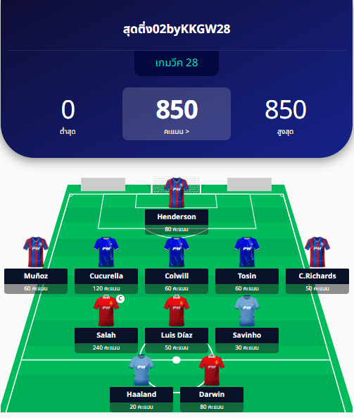 PM-Managerประกาศผู้ชนะฟุตบอลแฟนตาซี ประจำสัปดาห์ที่ 28 โดยเป็นทีม สุดติ่ง02byKKGW28 ที่ทำได้ 850 คะแนนในสัปดาห์นี้
